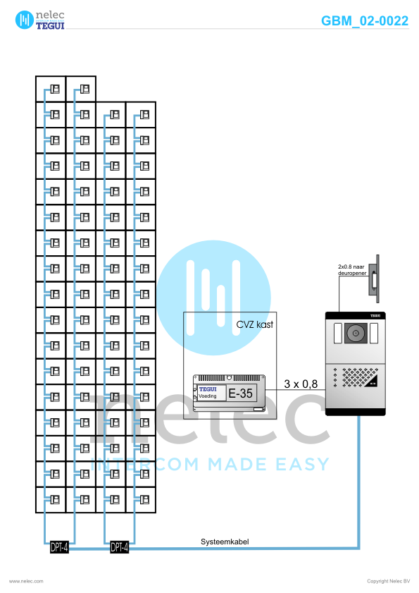 Tegui referentieproject uit 2002 in Amsterdam met 66 appartementen met GBM M-72 videofoons doorlussen. Adres: Ecuplein 75 te 1060 RN Amsterdam.