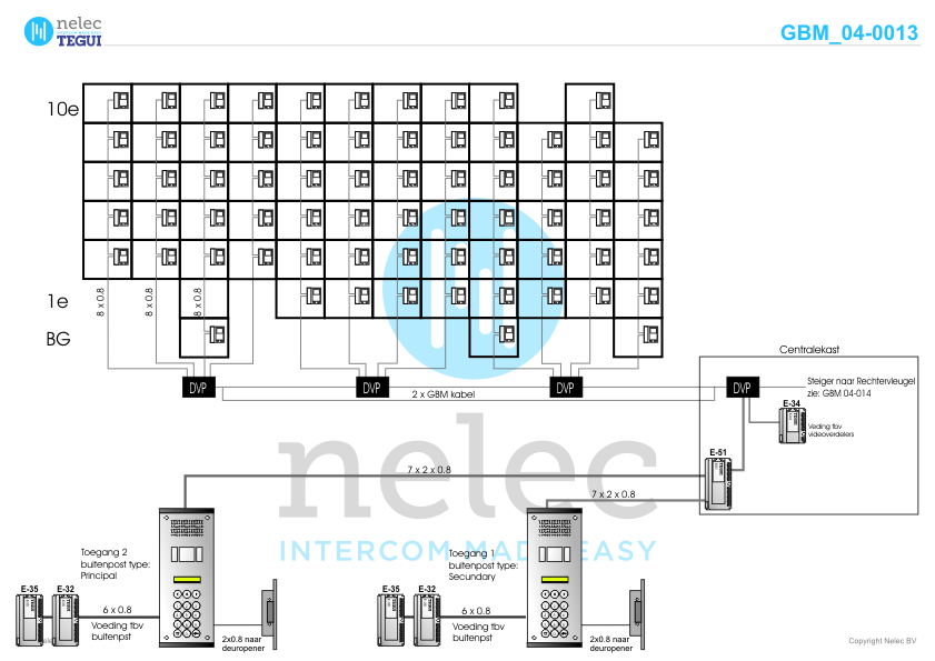 Tegui referentieproject uit 2004 in Eindhoven met 245 appartementen met GBM M-72 videofoons doorlussen. Adres: Herodotusplein 1-258 te 5624 EA Eindhoven.