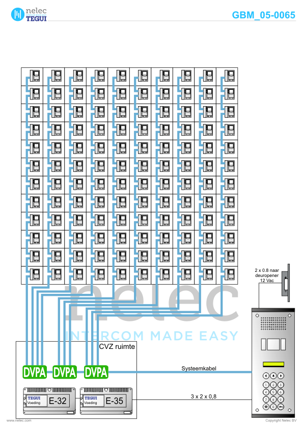 Tegui referentieproject uit 2005 in Hoogvliet met 3×120 appartementen met GBM M-72 videofoons doorlussen. Adres: Botreep 212-450 Prikkorf te 3192 PE Hoogvliet.